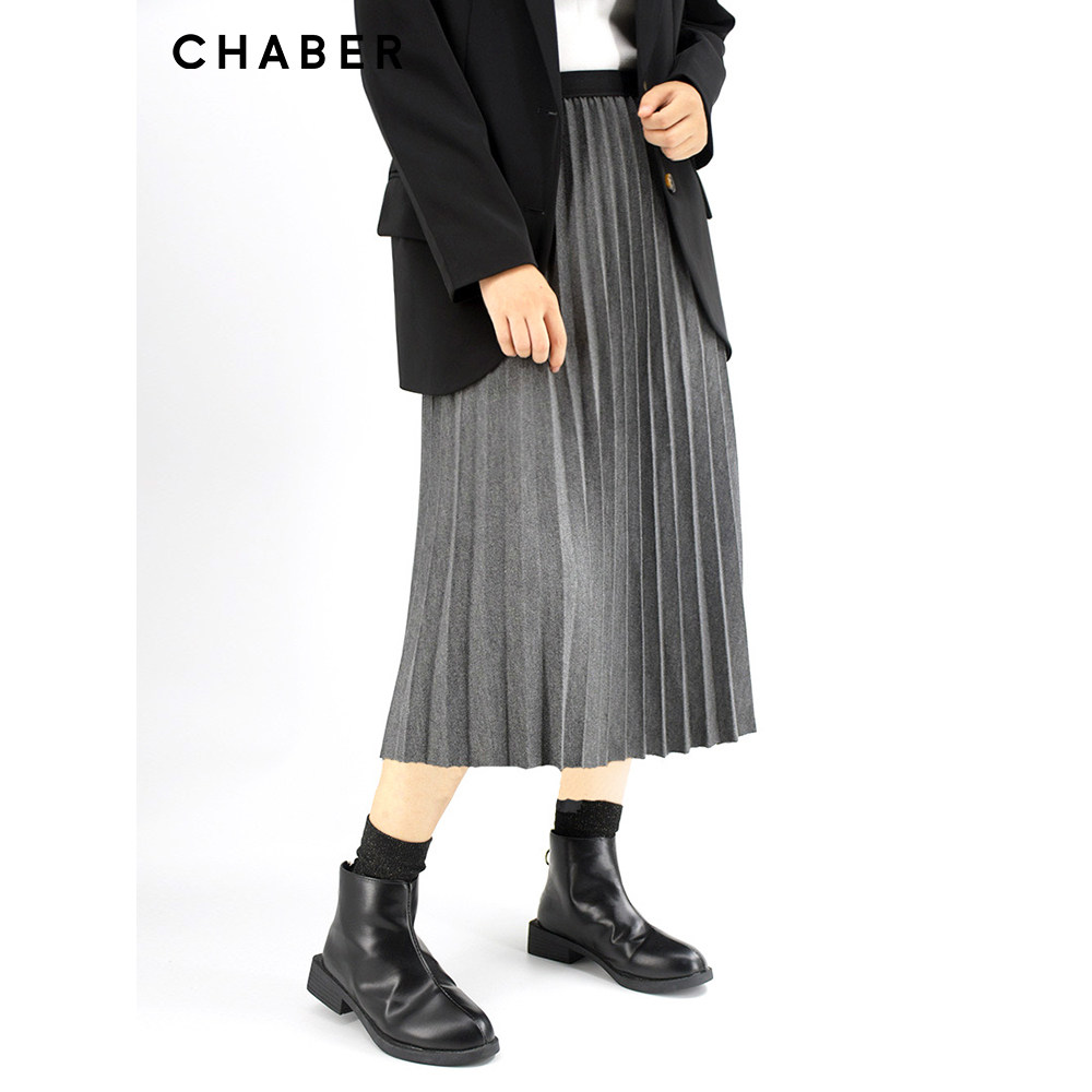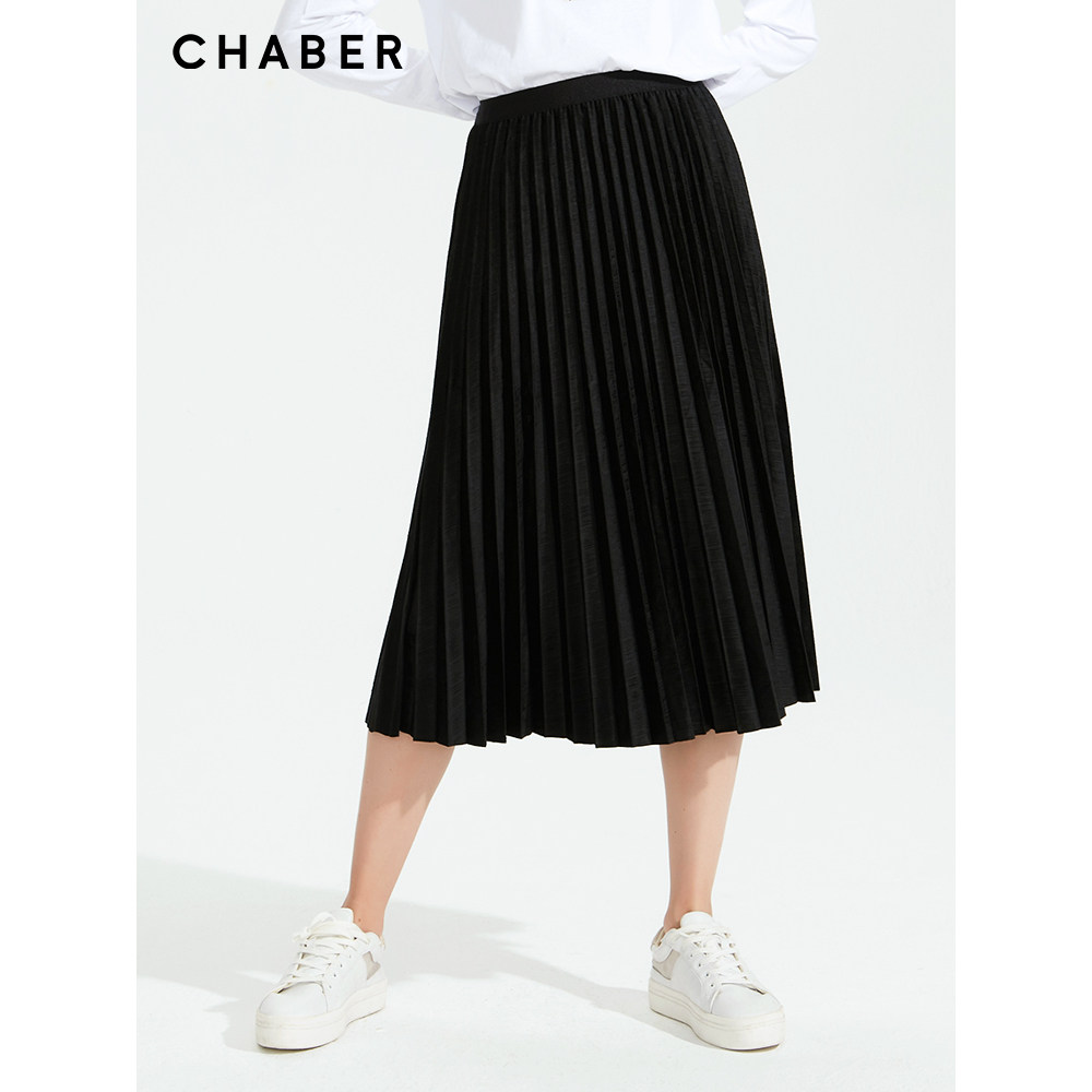 chaber巧帛秋季新品松紧高腰显瘦中长款裙子通勤百搭百褶半身裙