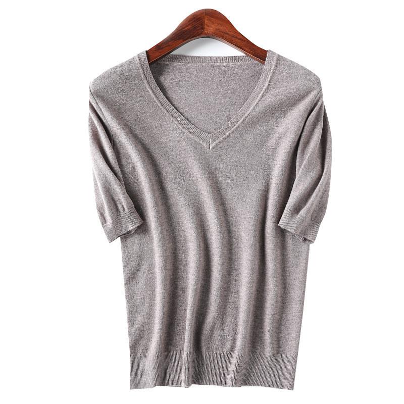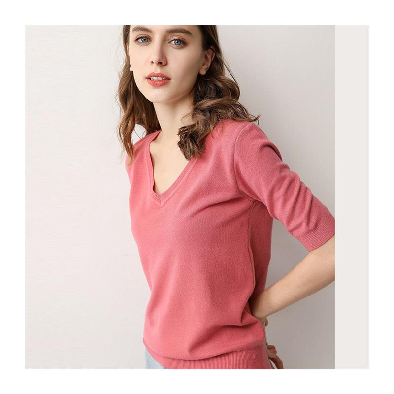 正品高货针织衫女短袖2025新款洋气v领五分袖毛衣宽松秋秋中袖打