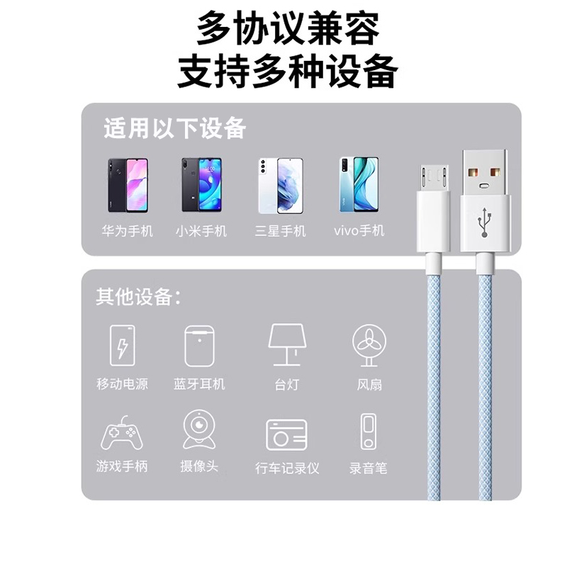驯龙师 安卓数据线适用华为iqoo小米oppo三星vivo荣耀超级闪充电器micro充电线通用快充加长2米typec6a车载