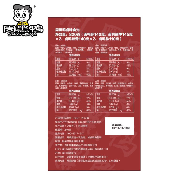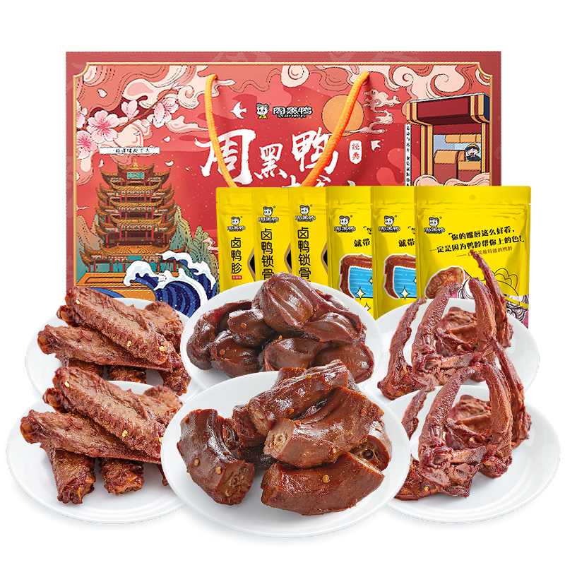 【周黑鸭】卤味食光820g鸭脖锁骨翅湖北特产礼盒整箱装真空小包装