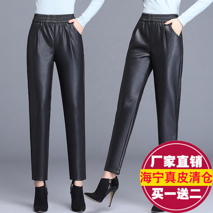 真皮皮裤松紧高腰宽松小脚萝卜裤