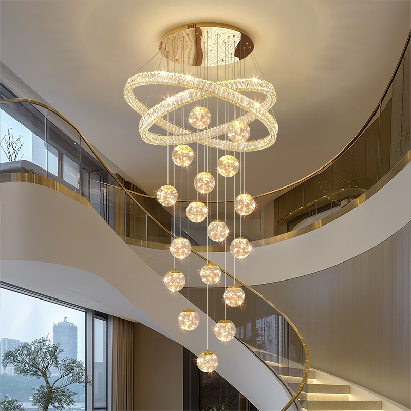 现代简约别墅挑空客厅吊灯复式楼中空大吊灯loft公寓轻奢水晶灯具