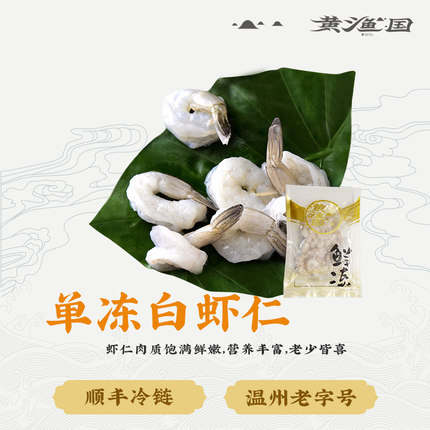 黄渔国新鲜冷冻大虾仁大号鲜活速冻低脂鲜白虾仁商用250g*2包装