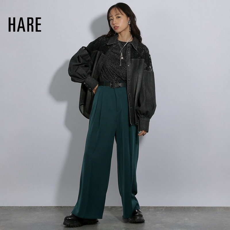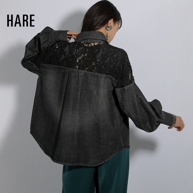 HARE衬衫女2025春秋束腰蕾丝拼接渐变牛仔衣290982