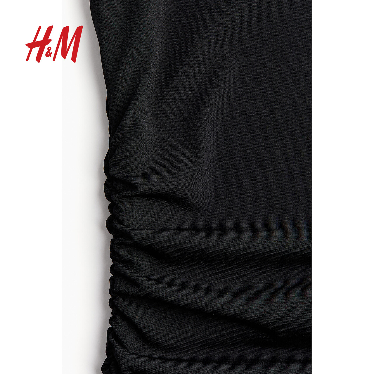 HM女装秋季一字领修身盖袖中长裙连衣裙1239334