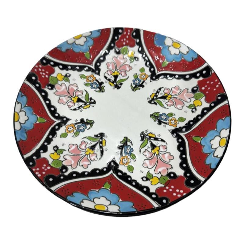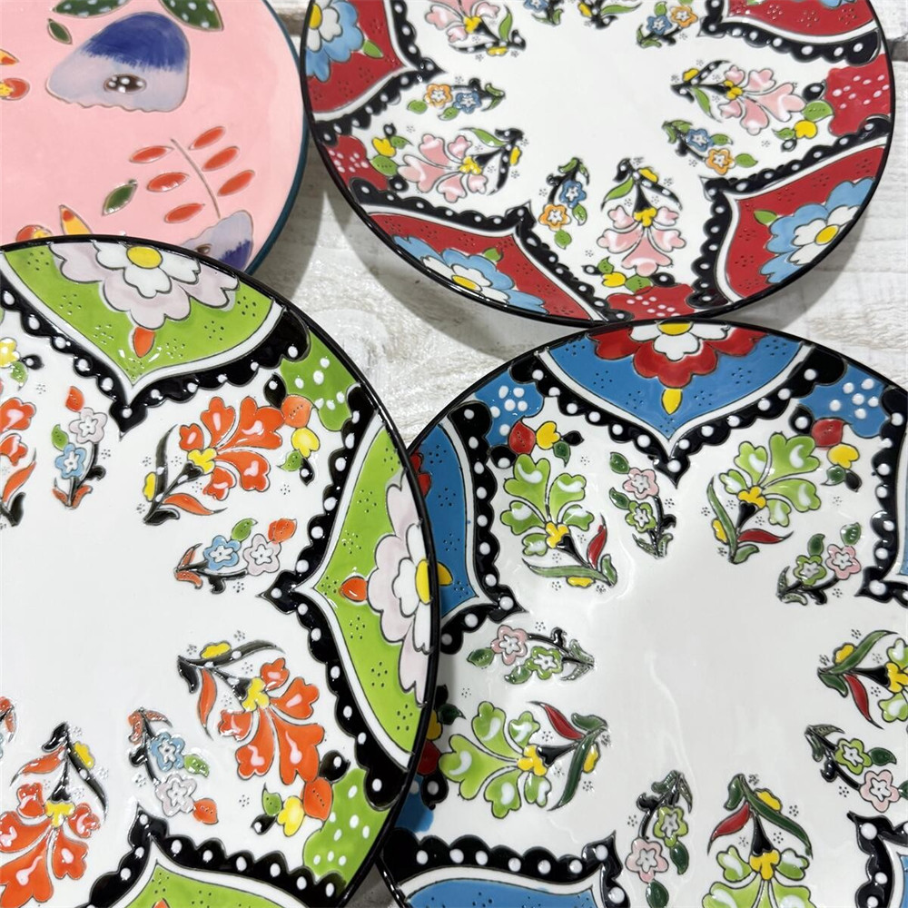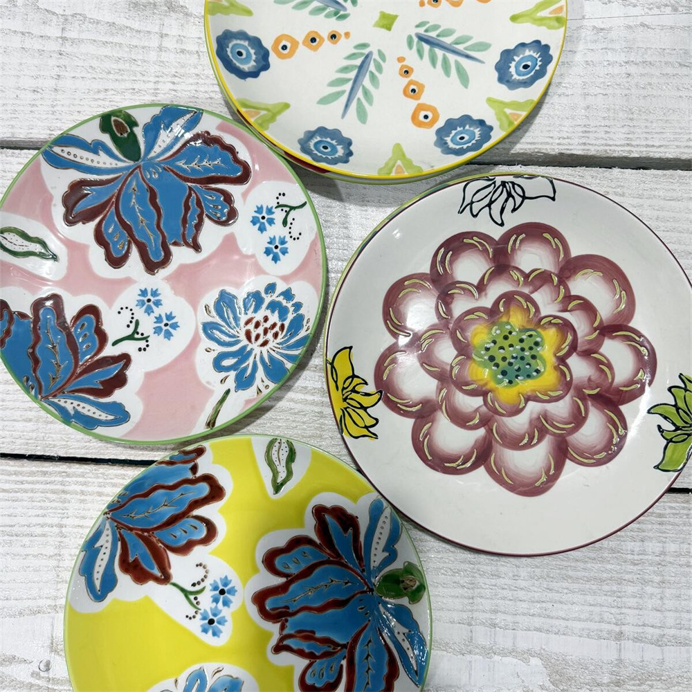 外贸风格 手绘浮雕花朵 8英寸陶瓷盘 水果盘餐盘 平盘 儿童糕点盘
