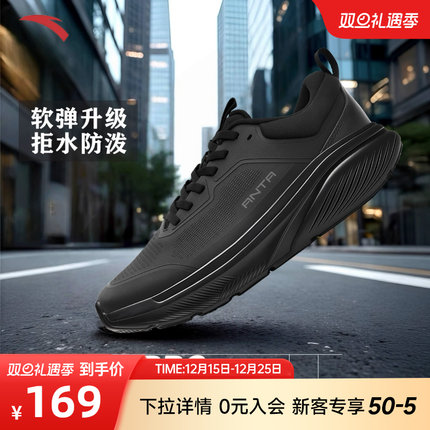 【秋冬新款】安踏神行pro防泼水皮面通勤25男子减震舒适跑步鞋-PX