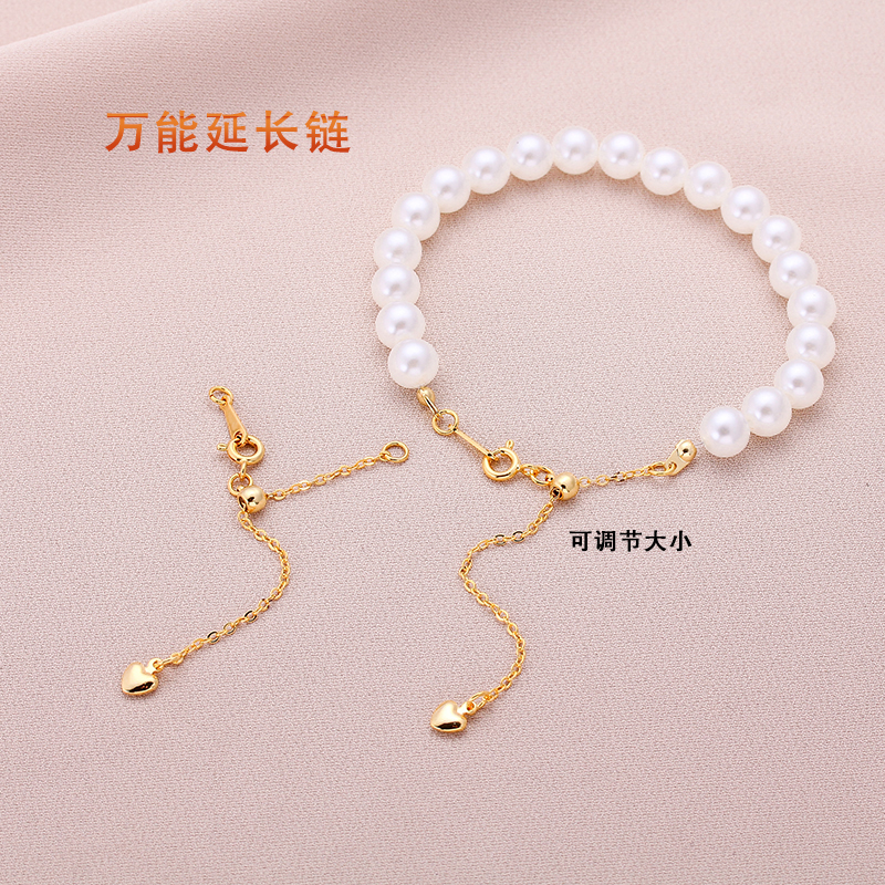 保色18k包金爱心尾链手工串珠diy材料配件珍珠手链项链收尾延长链