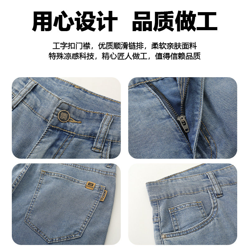 2026年夏季新款天丝凉感宽松简约复古超薄款五分牛仔裤男士舒适裤