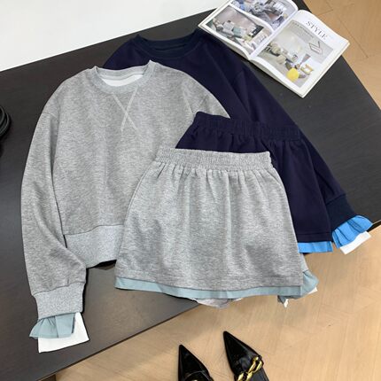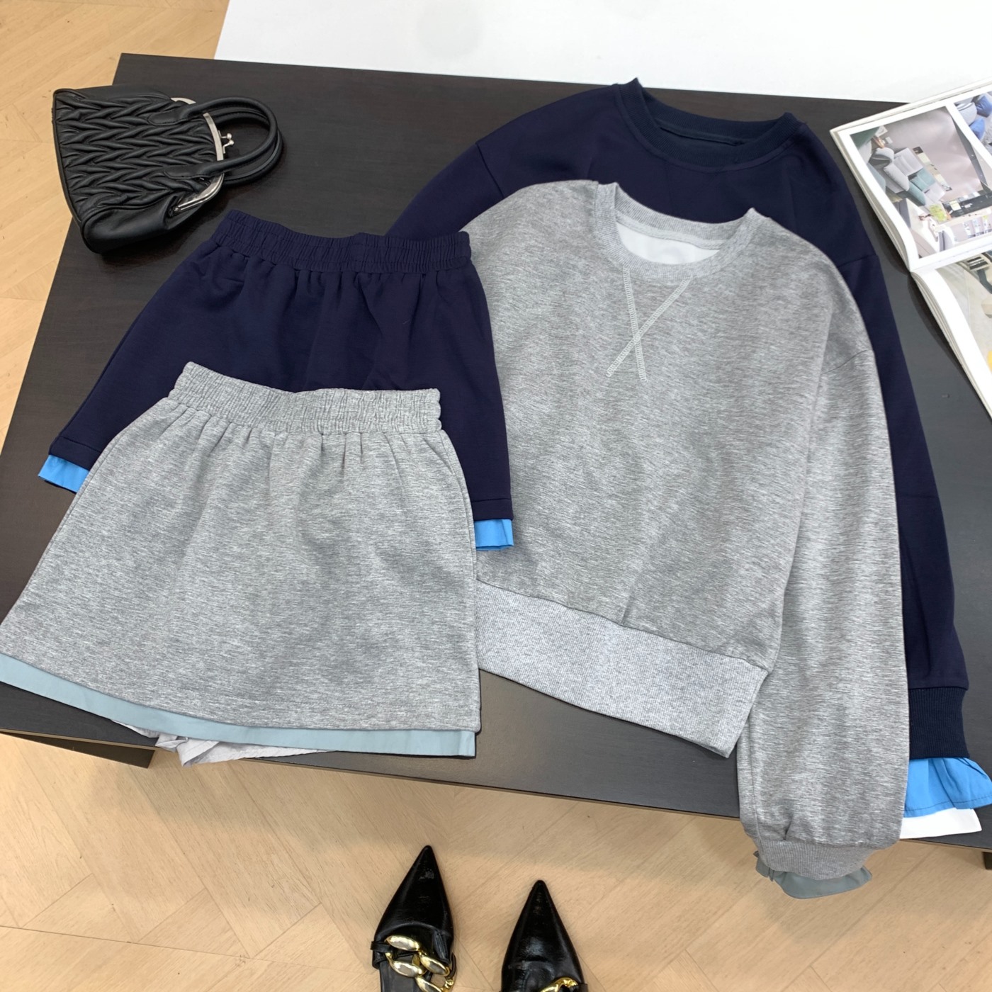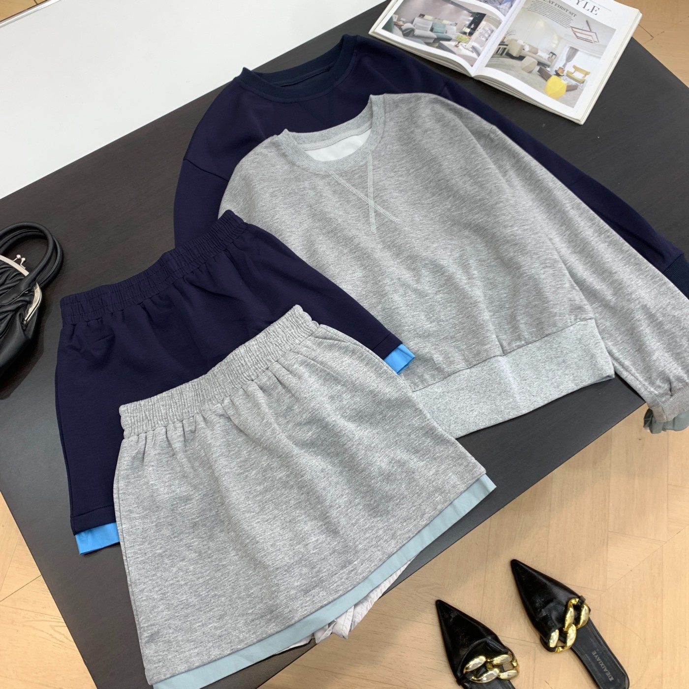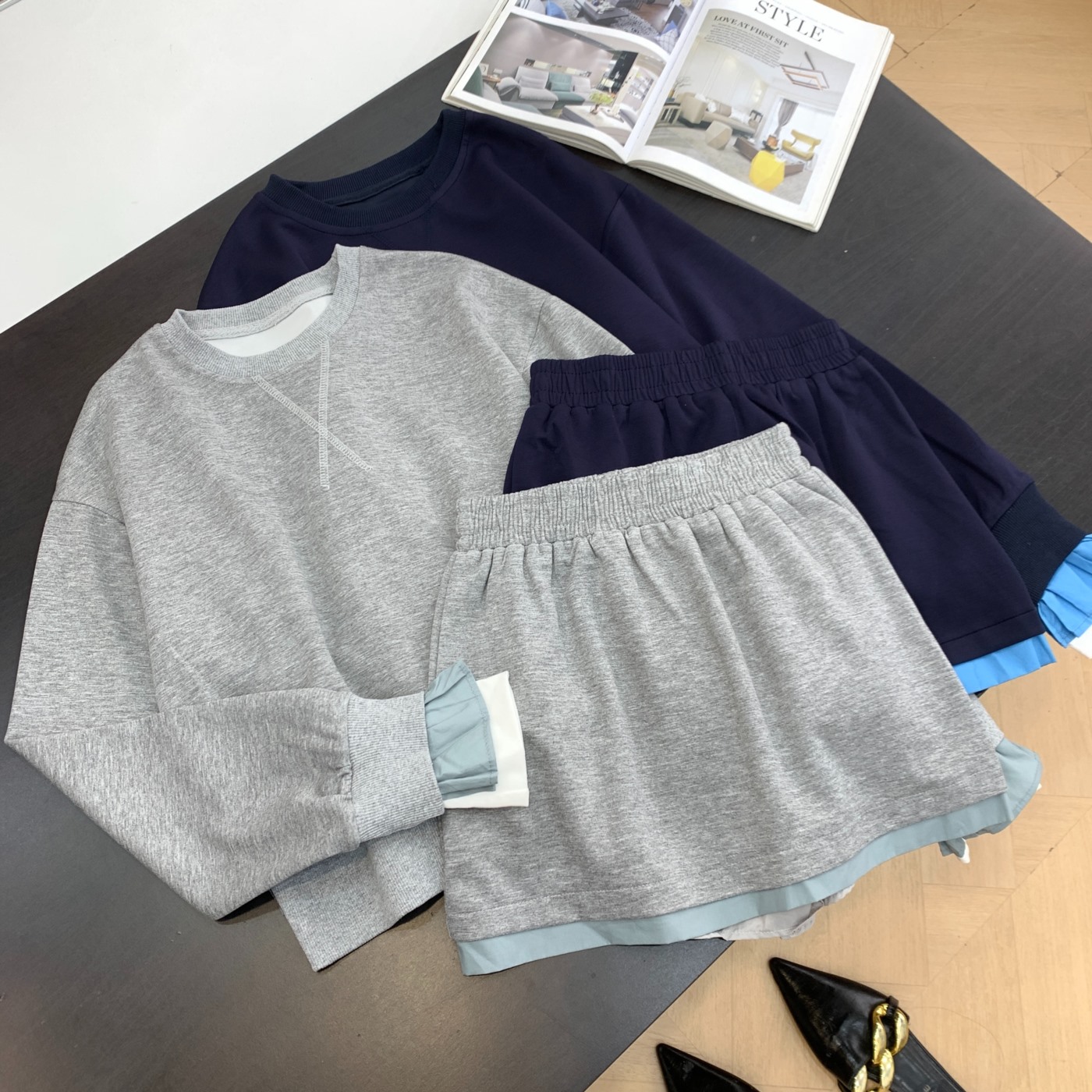 套装圆领卫衣显瘦直筒新款休闲秋季松紧腰休闲短裤I#19