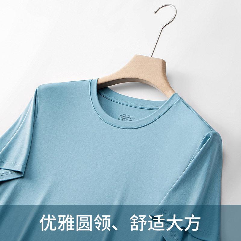 莫代尔夏季男士短袖t恤纯色内搭上衣内穿圆领冰丝凉感大码打底衫