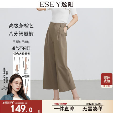 逸阳高腰八分阔腿裤女2025夏新款宽松显瘦茶棕九分垂顺吸汗直筒裤
