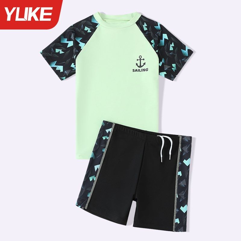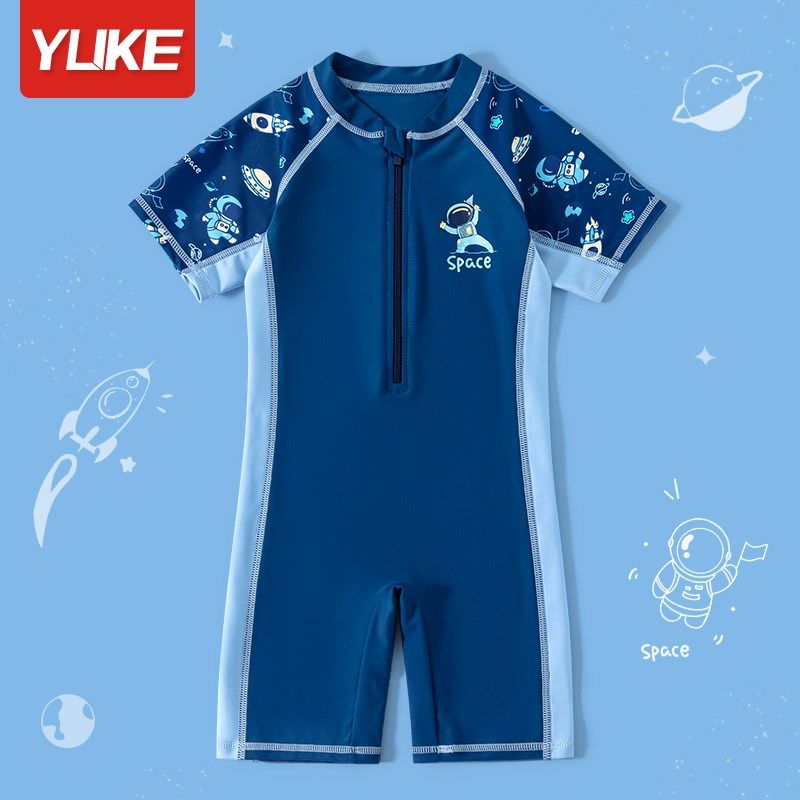 儿童泳衣男童短袖连体游泳衣裤2024新款夏季男孩海边防晒游泳套装