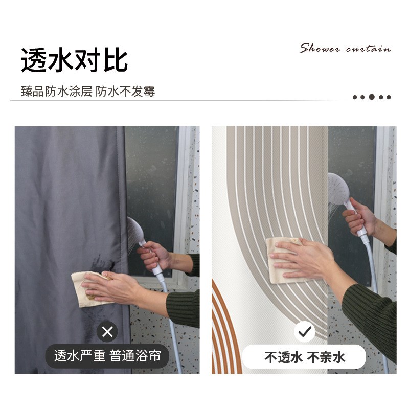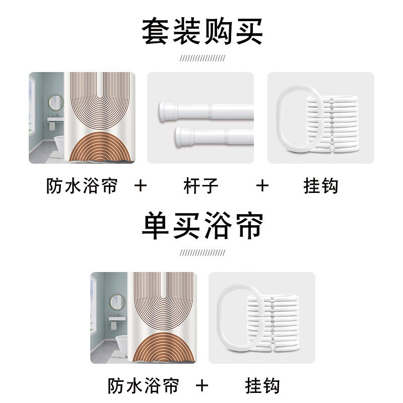 大孔浴室浴帘套装免打孔卫生间淋浴帘洗澡隔断帘防水布防霉加厚