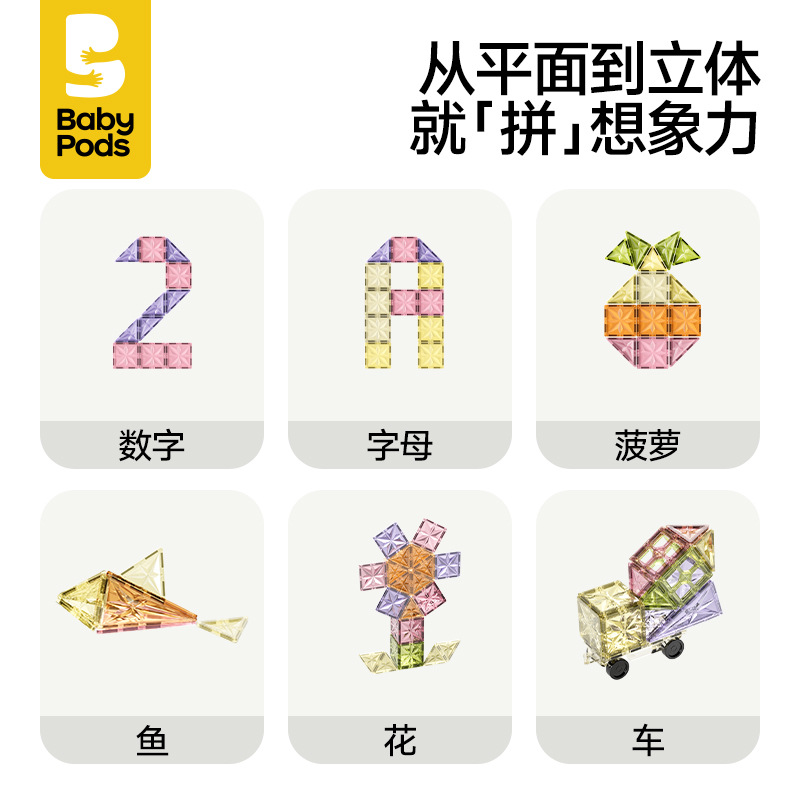 babypods儿童磁力片益智玩具彩窗积木拼装拼图玩具男女孩生日礼物