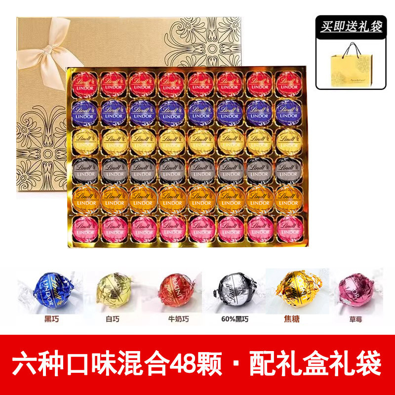 进口lindt瑞士莲软心球巧克力30颗送礼盒/礼品袋节日礼物新年年货