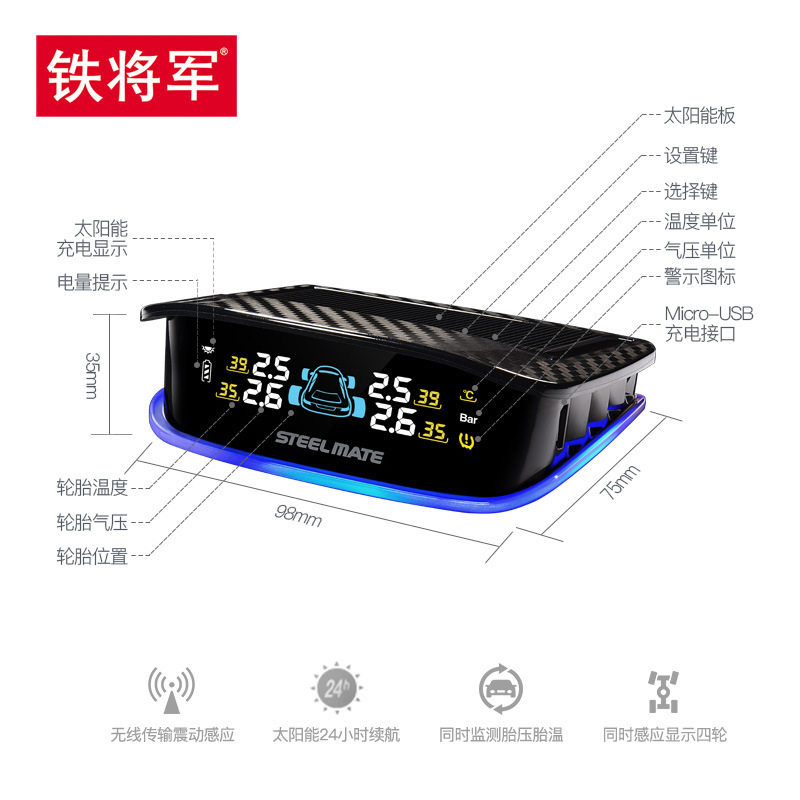 铁将军X2X1E3汽车胎压监测器太阳能无线检测仪内置环氛围灯带碳纤