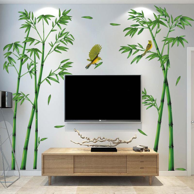 可移除墙贴小清新自粘墙贴纸贴画中国风竹子客厅沙发床头卧室贴纸