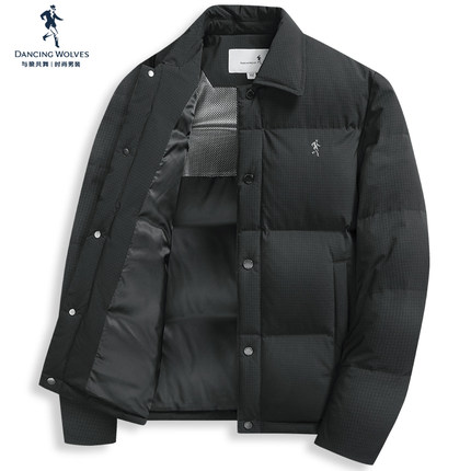 【细格纹理】与狼共舞翻领羽绒服男2025冬季新款科技保暖鸭绒外套