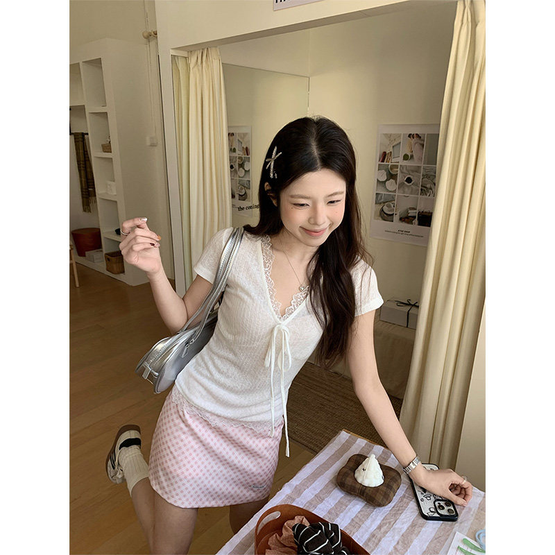 汤圆不圆 3/13 PM 20:00 春季焕新 新品八折 蕾丝短袖t恤女夏季