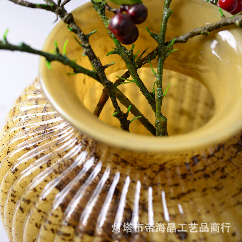 极速中式仿古h立体竖纹中式软装摆件彩色玻璃花瓶家居装饰客厅落