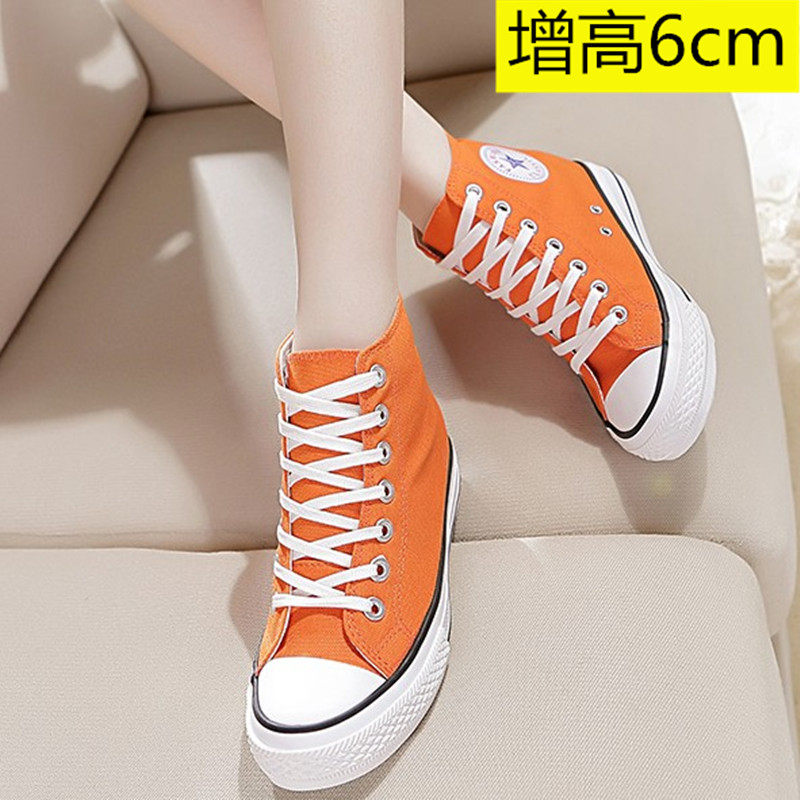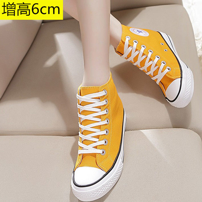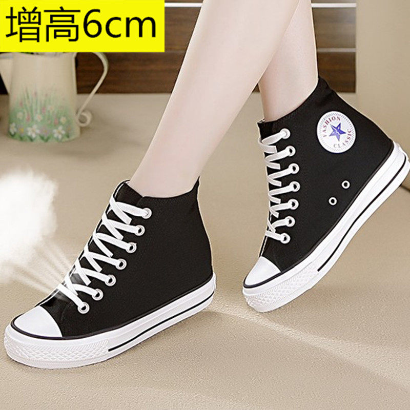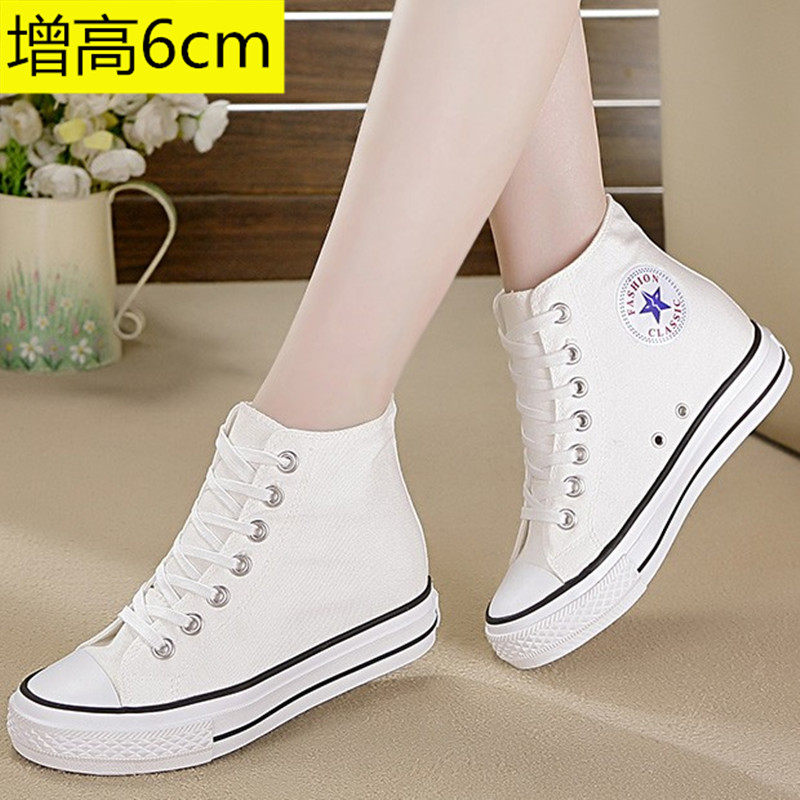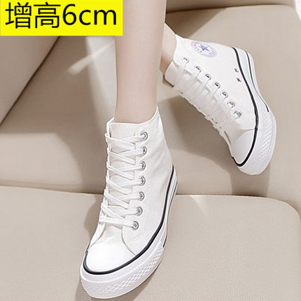 隐形内增高6cm厚底松糕帆布鞋女学生坡跟系带白色高帮休闲单鞋潮