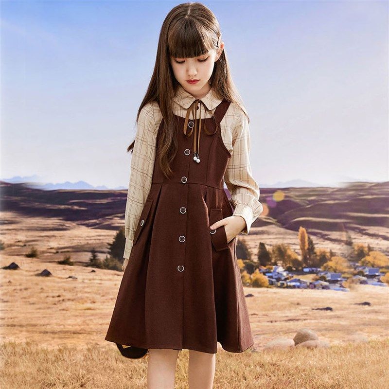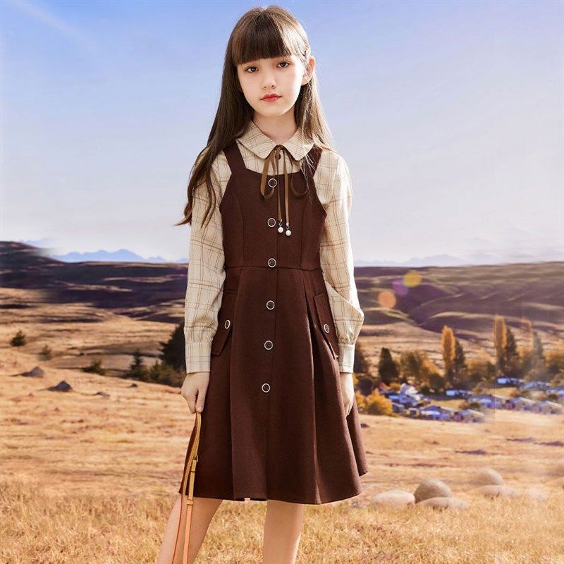 女童连衣裙新款春秋季背带裙衬衫裙子两件套儿童套裙2024时尚套装
