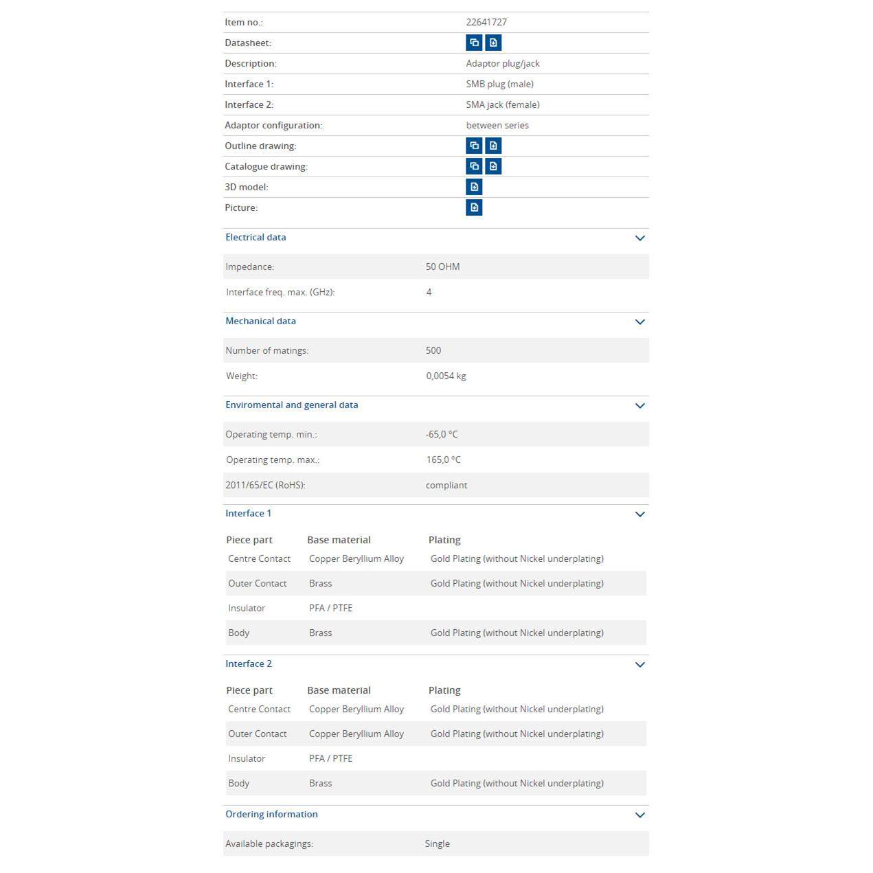 灏讯suhner同轴连接器接头33_SMB-SMA-50-1/111_U22641727