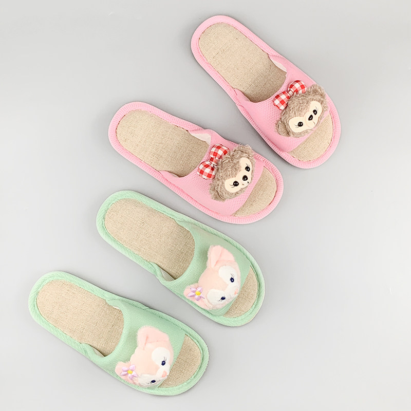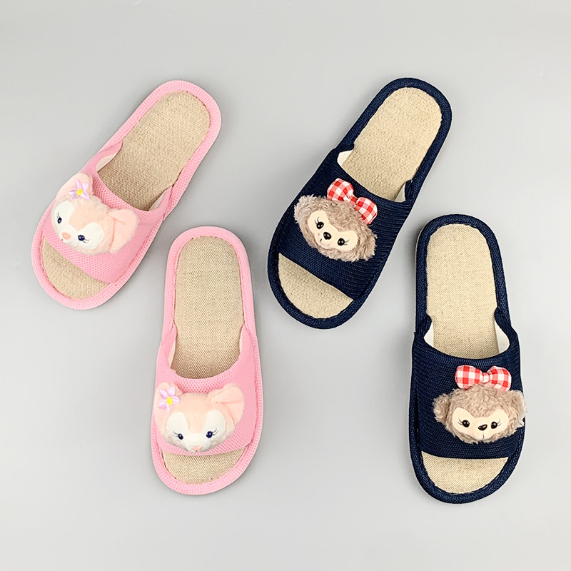 夏季可爱拖鞋居家室内女士情侣拖鞋地板鞋舒适亚麻玲娜贝尔卡通鞋