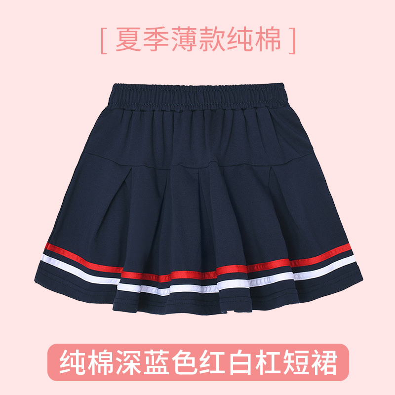 女童深蓝色半身裙夏季儿童短裙女孩米色校服裙小学生藏青百褶裙子