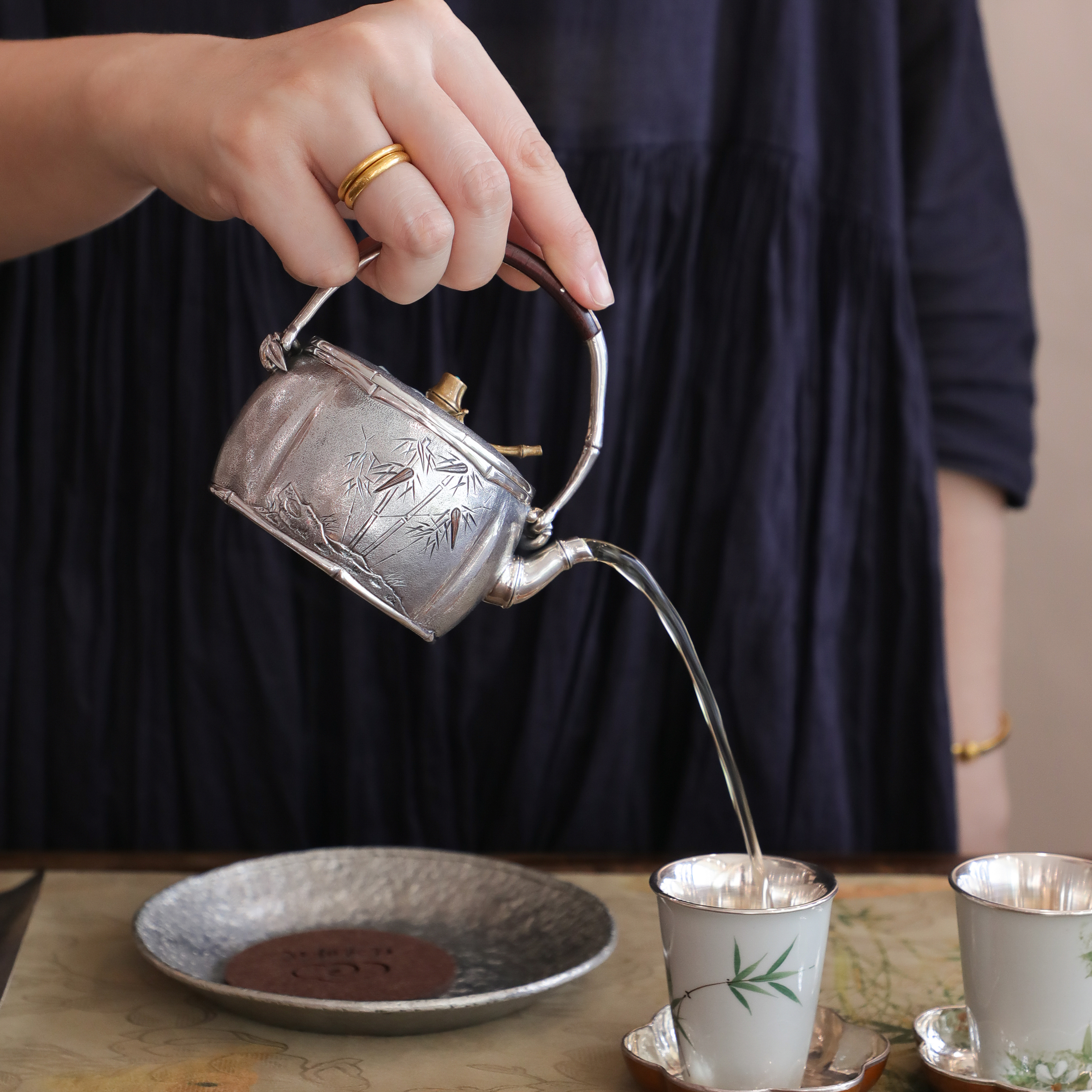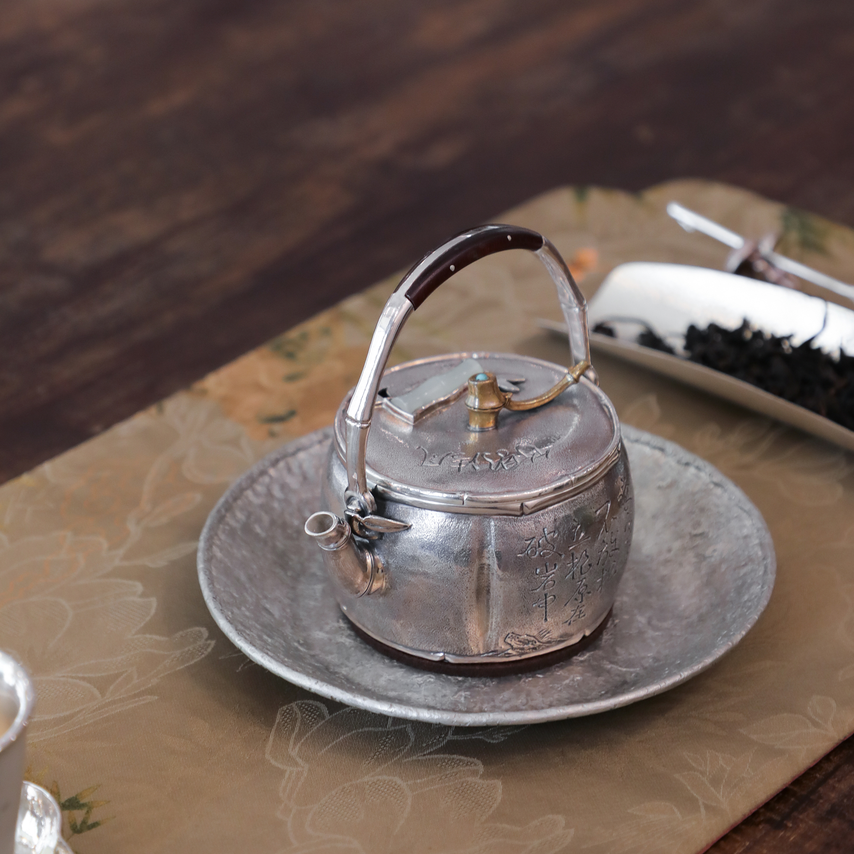 纯银时代竹影清风泡茶壶足银999非遗寸金文手作收藏提梁壶190ml