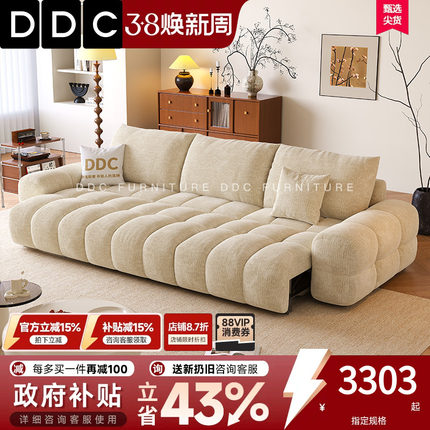 DDC麦岛智能电动多功能雪尼尔布艺沙发小户型泡芙奶油风沙发床