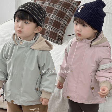 男女童秋冬季外套2025新款儿童加厚外套韩版时尚纯色风衣冲锋衣潮