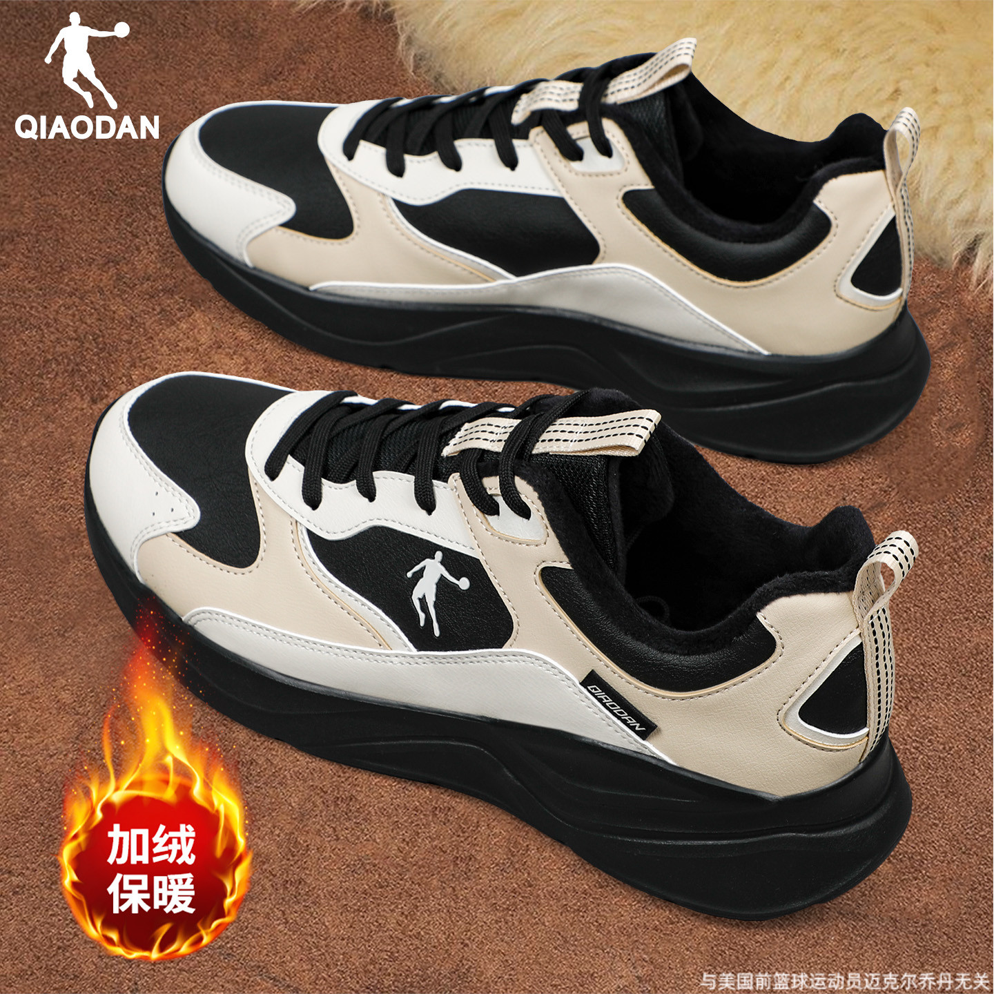 乔丹男鞋跑步鞋2025新款秋冬季男款皮面加绒休闲鞋棉鞋黑色运动鞋