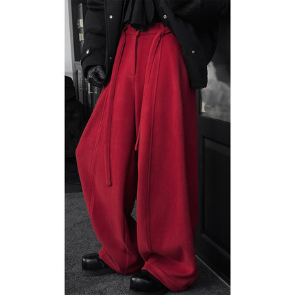 龙叨叨冬季男款新品简约高级感厚款百搭宽松垂感阔腿休闲西裤长裤