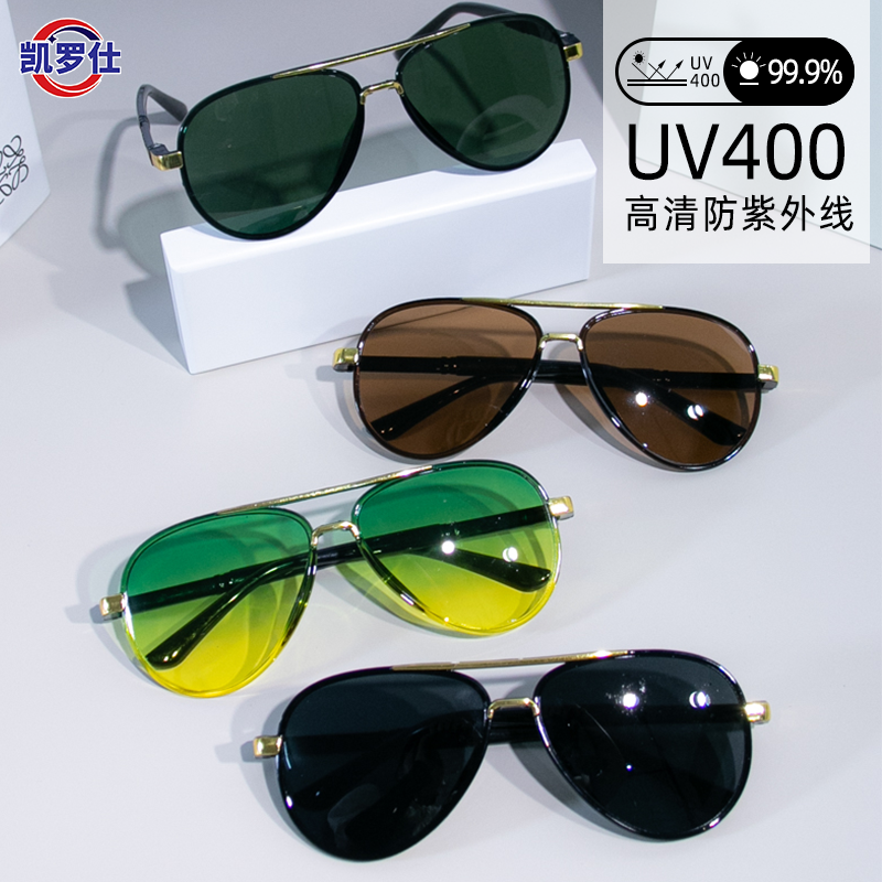 新款飞行员墨镜男士开车驾驶日夜两用防紫外线辐射偏光蛤蟆太阳镜
