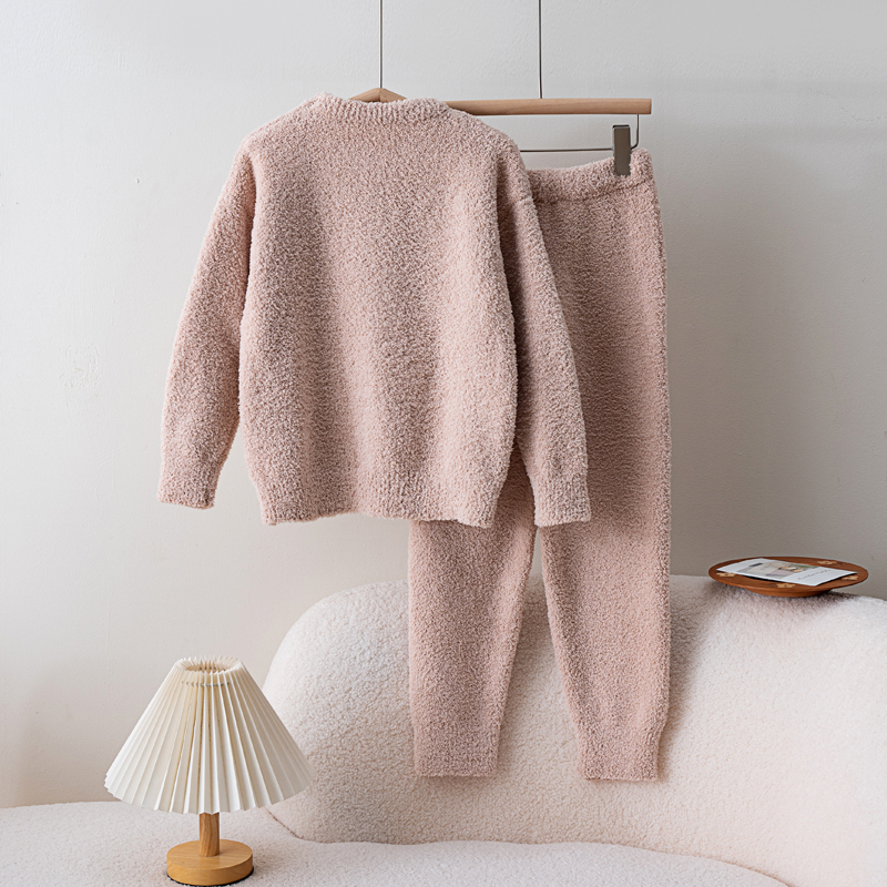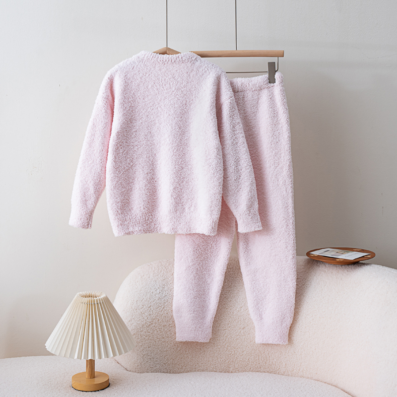 冬季儿童半边绒针织睡衣新款可爱加厚保暖珊瑚绒家居服亲子女童