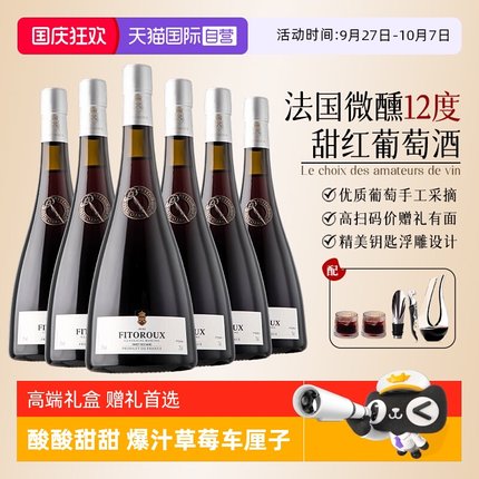 【自营】法国进口12度甜红葡萄酒红酒微醺果酒750ml原酒礼盒装