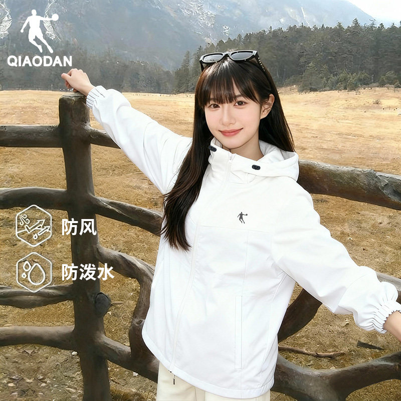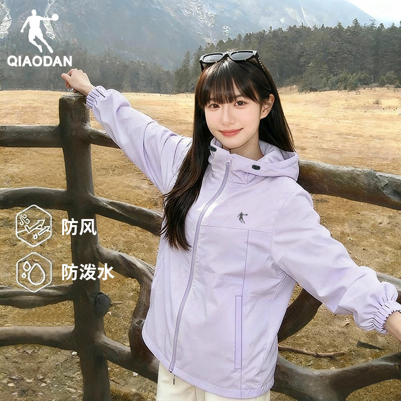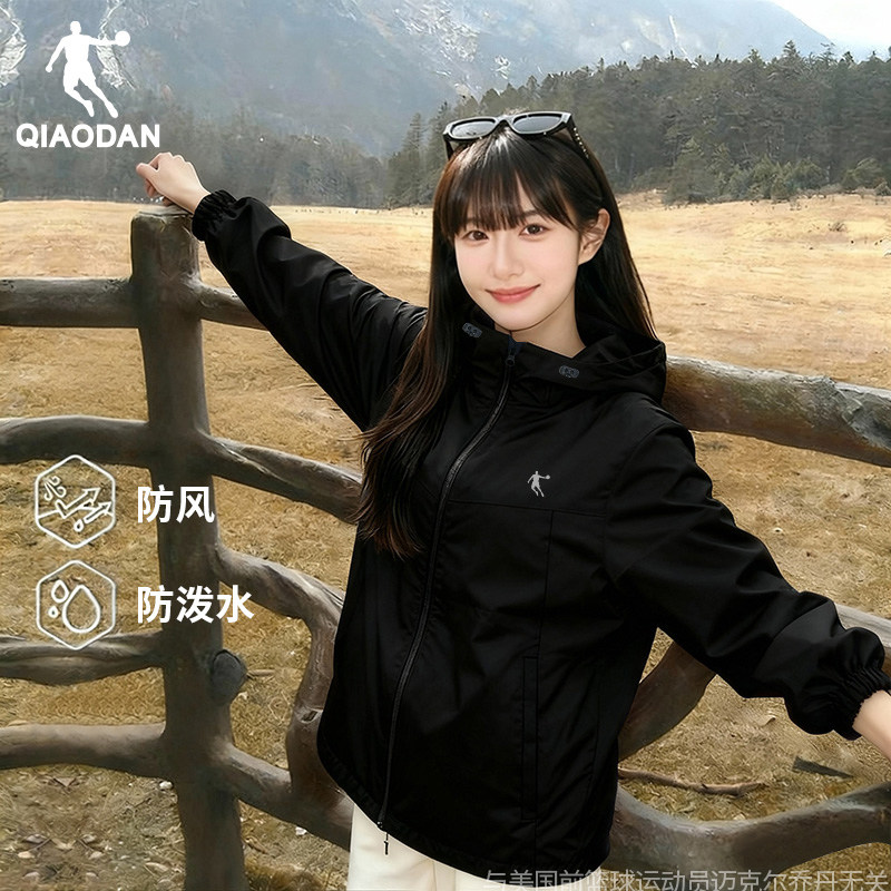 乔丹冲锋衣女2025秋季新款薄款小个子连帽上衣户外大码风衣外套
