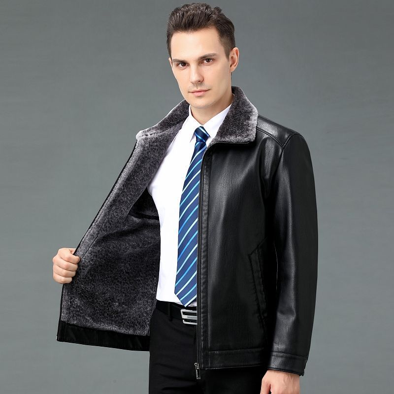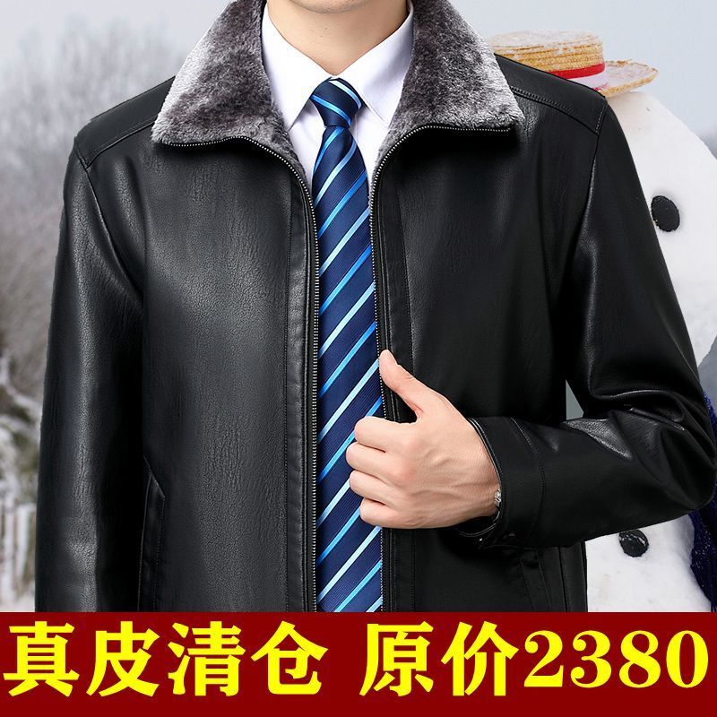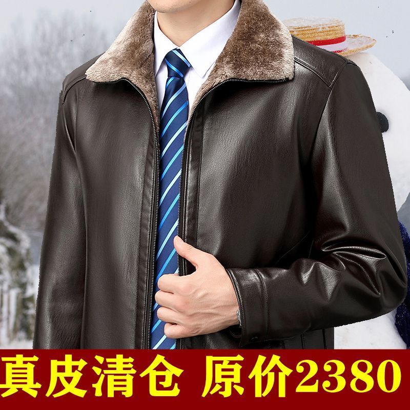 上新海宁皮衣外套男头层绵羊皮冬季加绒加厚皮毛一体中老年爸爸装