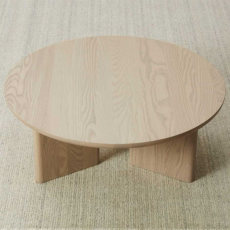 岩物侘寂风实木圆形茶几简约几何创意小户型日式茶台飘窗桌白蜡木