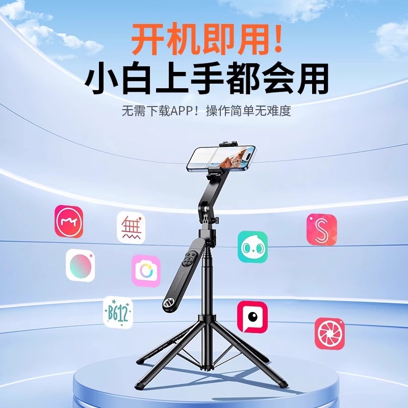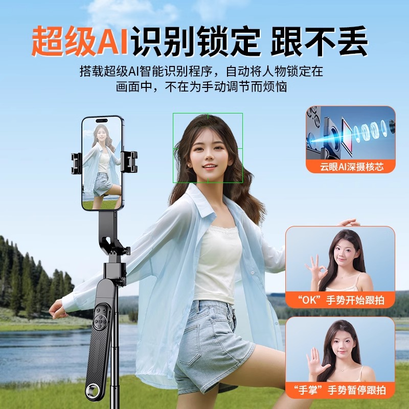 跟拍自拍杆云台}2025新款360度旋转手机自拍神器通用自动直播拍摄支架稳定器旅游便携落地三脚架拍照24防抖