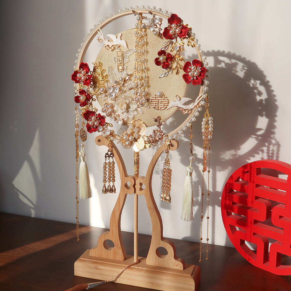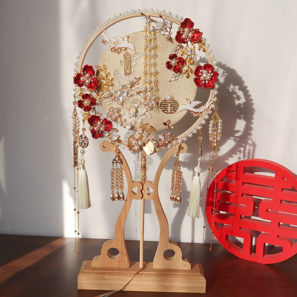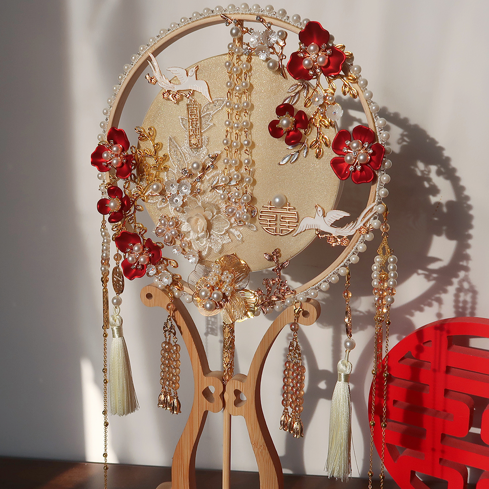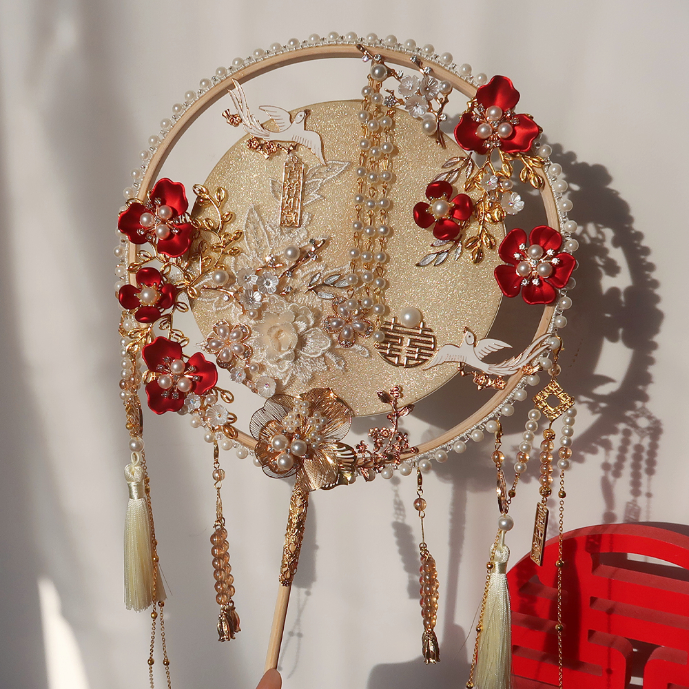 香槟色团扇结婚新娘diy材料包手工喜扇秀禾服婚礼中式出嫁遮面扇