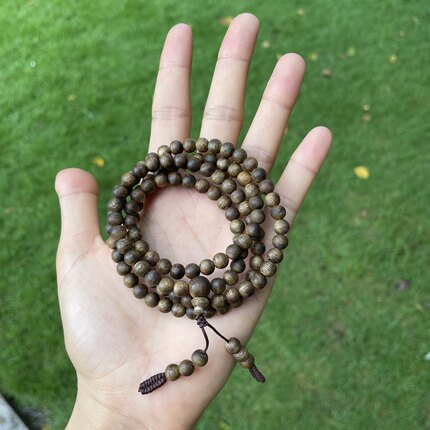 天然莺歌绿奇楠沉香手串108颗保真海南老料原木佛珠念珠6mm
