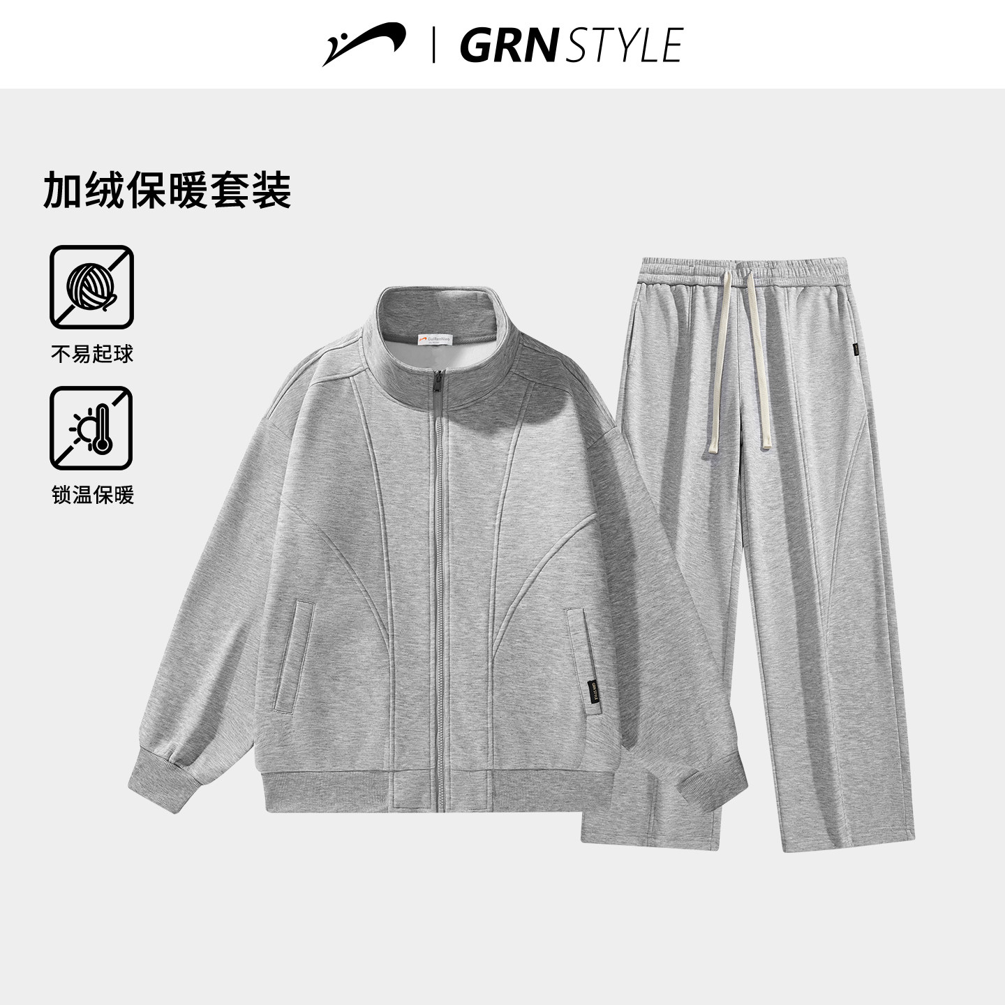 贵人鸟加绒开衫套装男款秋冬季2025年运动两件套男士训练服情侣装