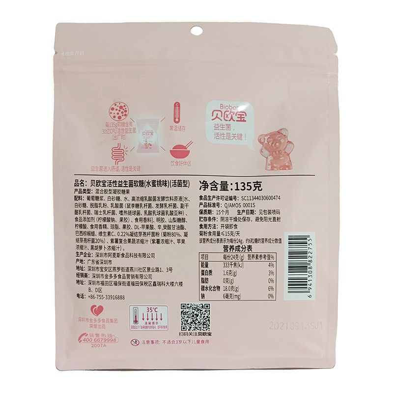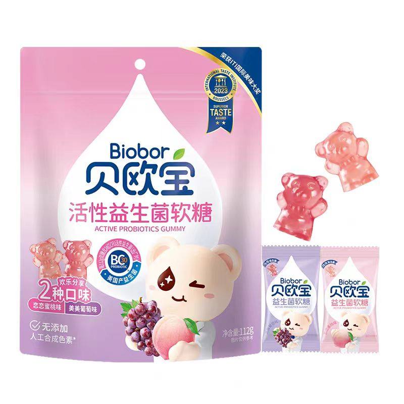 biobor贝欧宝益生菌软糖135克 水蜜桃葡萄酸奶味Q弹小熊造型软糖