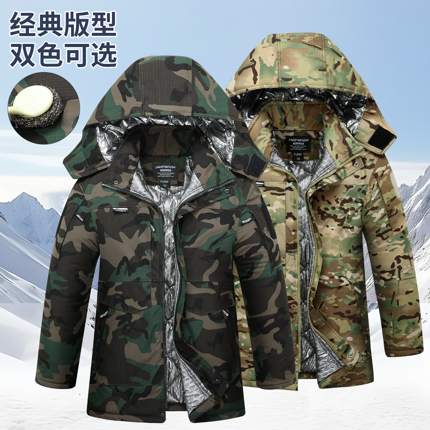 冬季工作服棉衣男防水内里石墨烯发热保暖迷彩大衣劳保服棉袄加厚