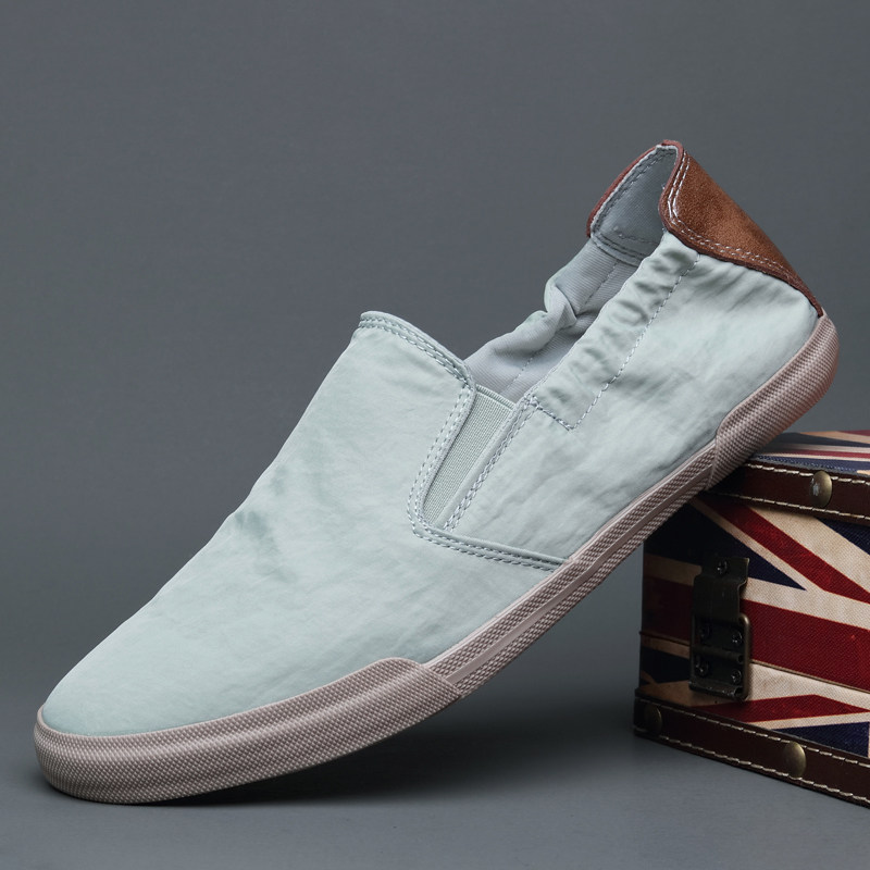 宝达英伦低帮一脚蹬帆布鞋男士懒人休闲乐福男鞋子软底老北京单鞋