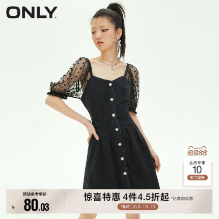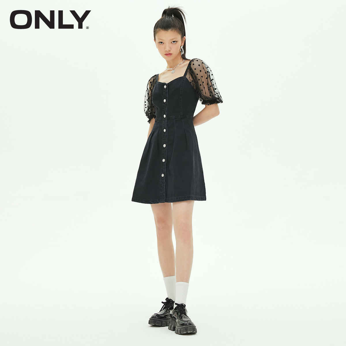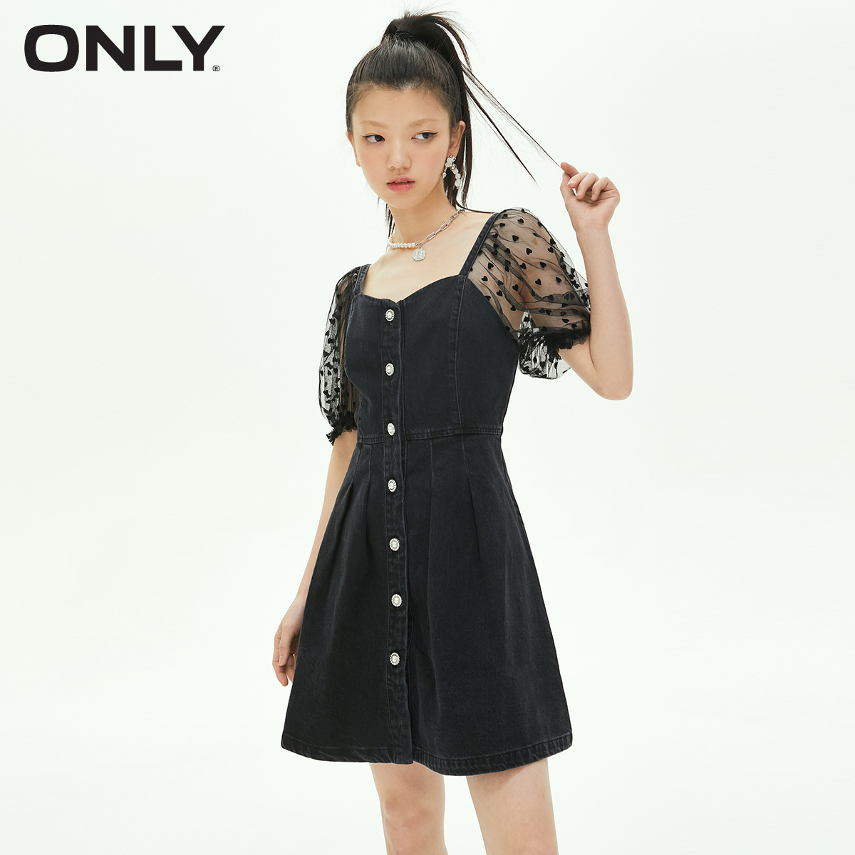 【ONLY奥莱】夏季复古灯笼袖牛仔连衣裙女