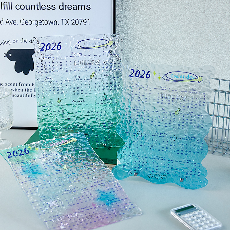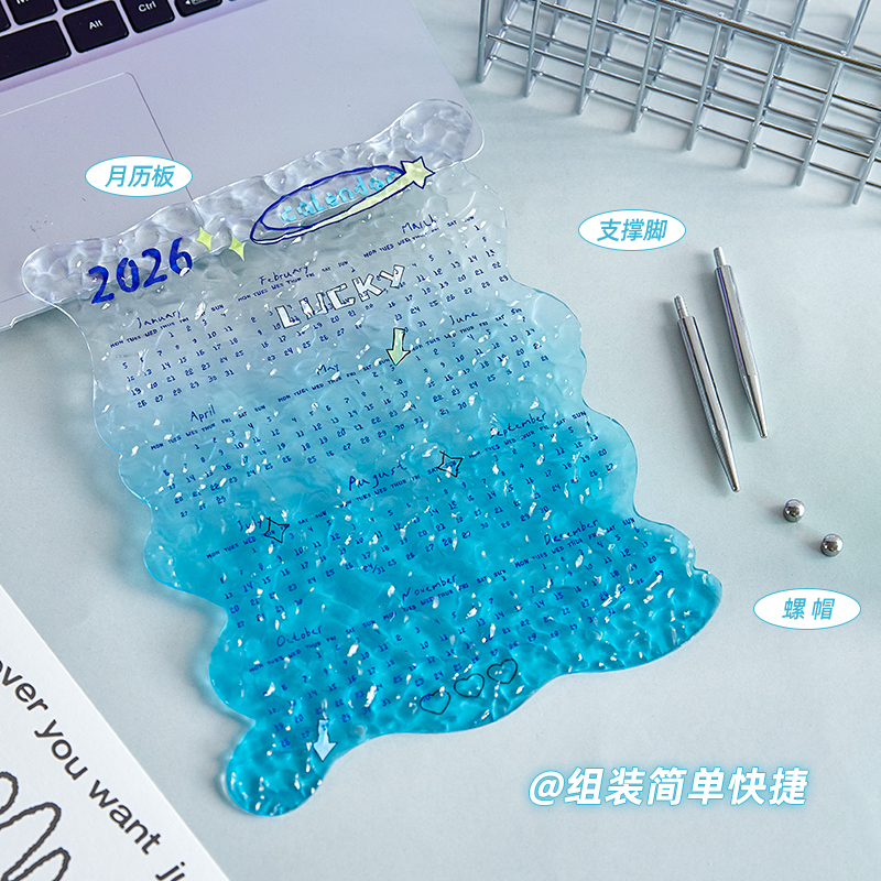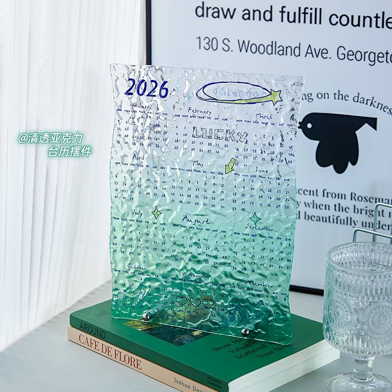 亚克力台历2026年新款创意桌面迷你水波纹小日历学生课桌办公室可爱桌面摆件马年月历自律打卡表计划记事本